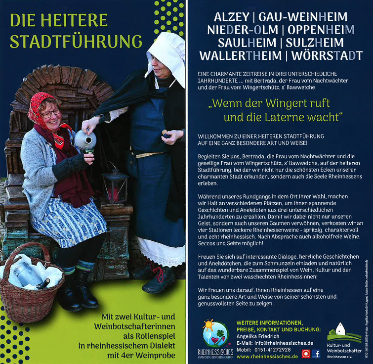 Mit zwei Kultur- und Weinbotschafterinnen als Rollenspiel in rheinhessischem Dialekt mit 4er Weinprobe